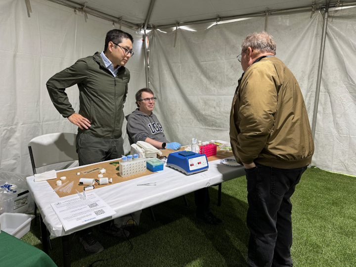 Hideaki and Carlos at BMES 2011 Annual Meeting.Reunited with former UCLA friends at Harvard. From right: Prof. Chun (U of Pittsburgh), Dr. Lillehoj (UCLA), Dr. Wong (Harvard), Hideaki, Dr. Hur (Harvard), and Carlos.